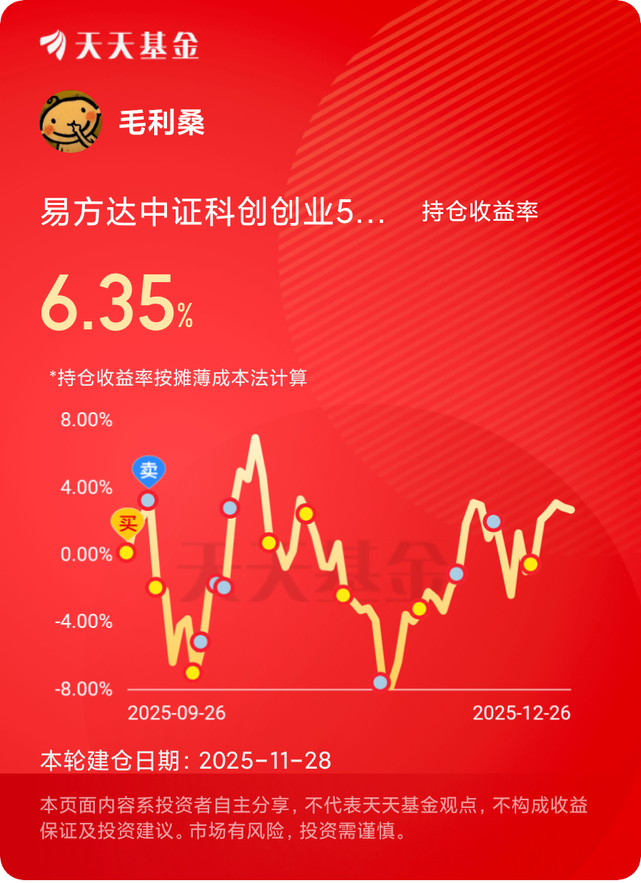 展望未来,我将继续坚持“科技+红利”的哑铃策略,定期调整平衡,使组合始终保持风险与收益的平衡。我相信,在中国经济长期向好的大背景下,坚持定投优质资产,我们普通投资者也能分享经济增长的红利。投资是一场马拉松,而非百米冲刺。找到适合自己的策略,坚持定投,静待花开——这就是我2025年最深刻的投资感悟。@易方达基金