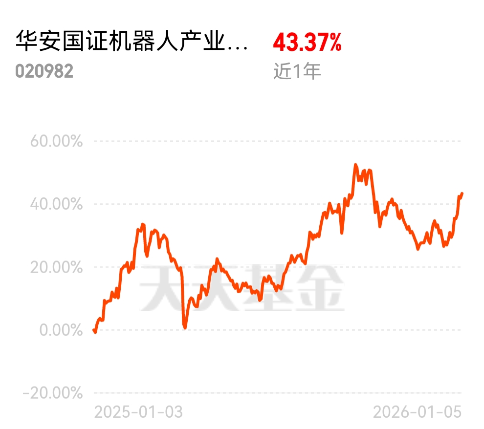 未来产业布局看机器人!$华安国证机器人产业指数发起式C$ 近一年涨43%+,AI+机器人风口踩得准,工业、服务场景全覆盖,政策利好不断
