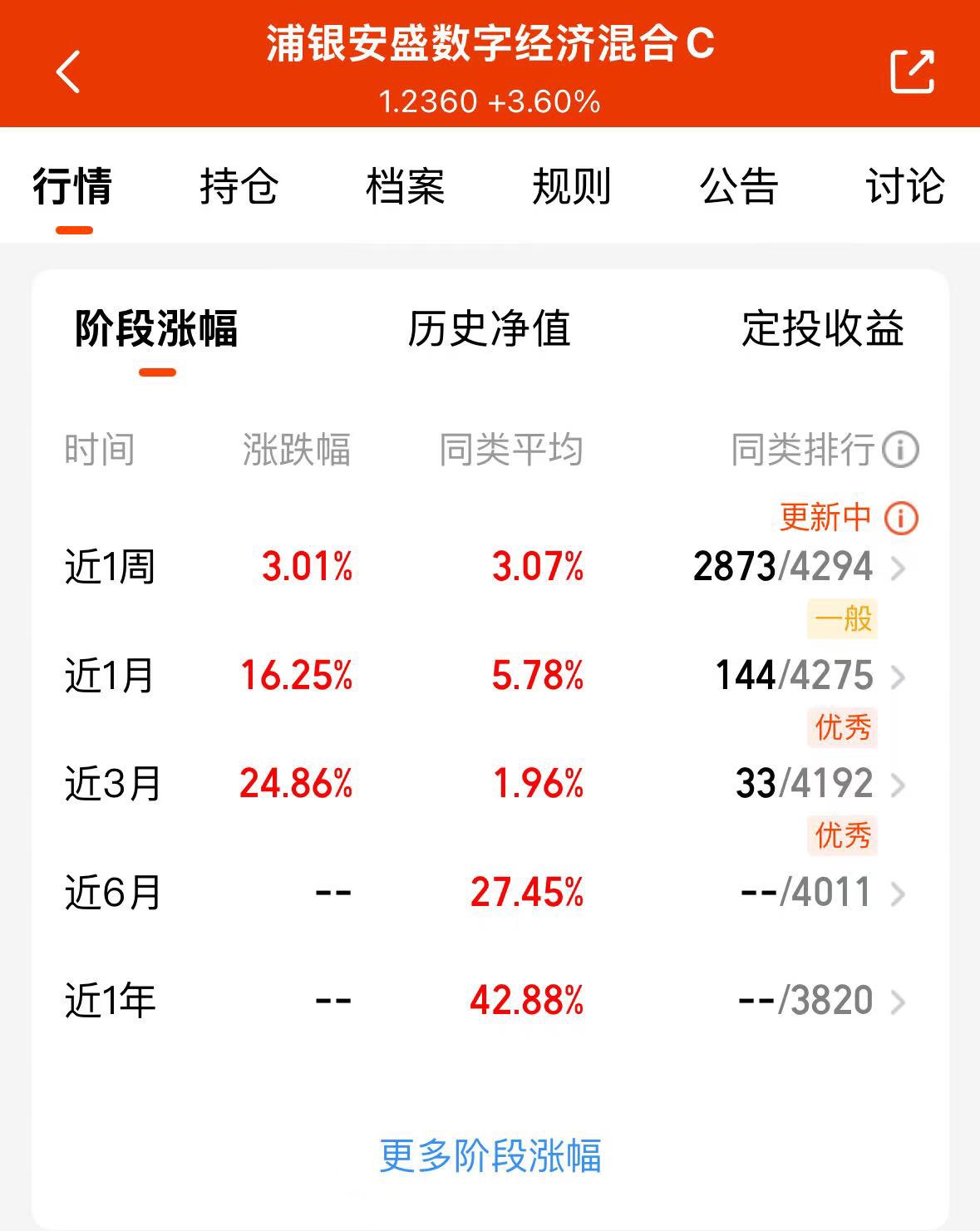 $浦银安盛数字经济混合C$ 从上车开始都很优秀,今天大涨3.6%。前面的表现已经证明基金经理的能力了,下面就看能不能拿住了,不翻倍不下车#晒晒我的2025投资战绩!#