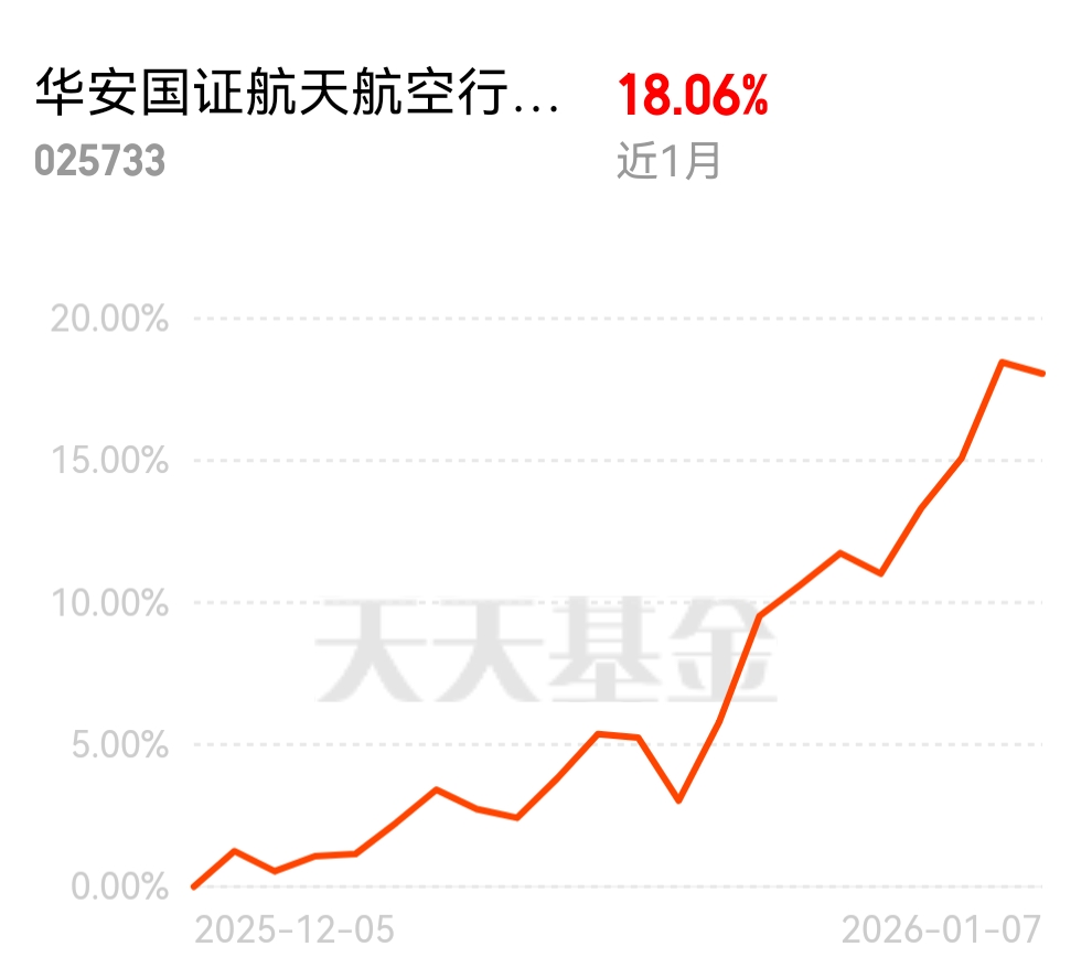 军工航天太给力了,$华安国证航天航空行业ETF发起式联接C$ 今天盘中涨超 4%,近月涨幅 18.06%,C 类低门槛,普通人也能蹭赛道红利
