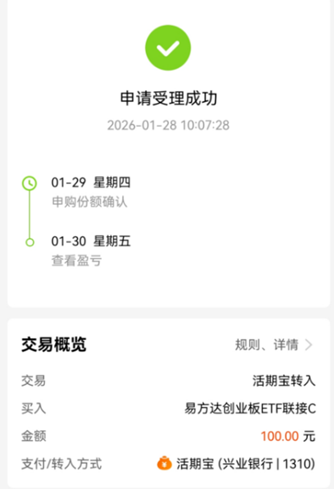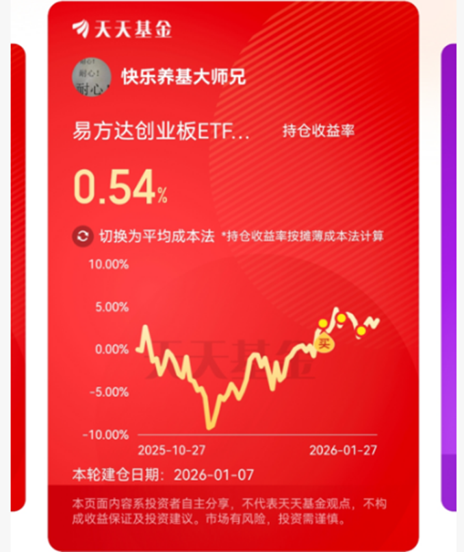 价值方面,我选的是红利指数,成长我选创业板指数。作为一个具有高波动特点的成长型宽基指数,定投是最合适的投资方式。今天,继续定投易方达创业板ETF联接C(004744)。