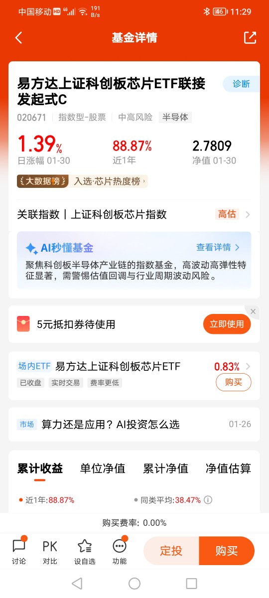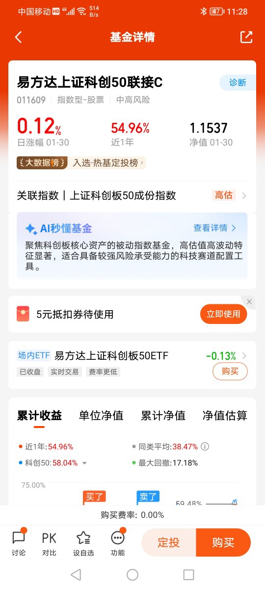 #我的年度投资操作# $易方达创业板ETF联接C$ 我年度最得意的操作是选择了创业板指数基金。在牛市,大多数板块都是轮番上涨,各自登台表演一次,然后谢幕。有些热点板块好似突然涨了很多,但一算同期最大涨幅,实际比创业板指数基金差一大截。对大多数没时间研究、不懂行业轮动的普通人来说,与其频繁操作,不如持有创业板指数基金做波段。而不是左挑右选,或者追高杀跌。