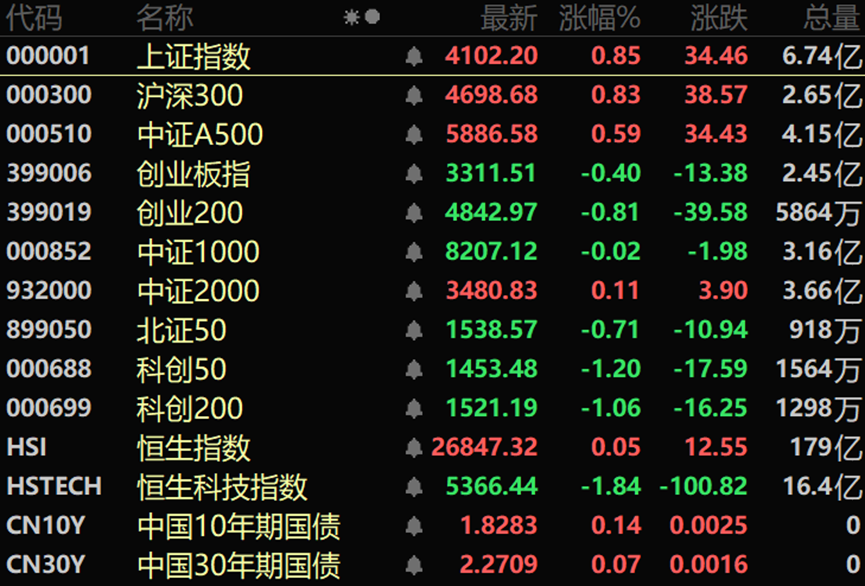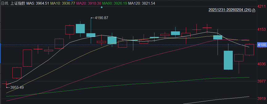 上午有冲高,下午回落后又向上拉起来,最终强势收上4100点。