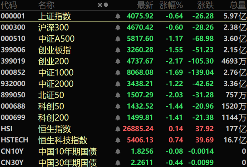 盘面上,全市场超3700只个股下跌。从板块来看,大消费板块大涨,食品饮料、零售、影视院线、旅游酒店方向轮番活跃;大金融板块午后走强;算力租赁概念回暖。下跌方面,有色金属、电网设备、油气等板块跌幅居前,其中贵金属概念集体大跌。