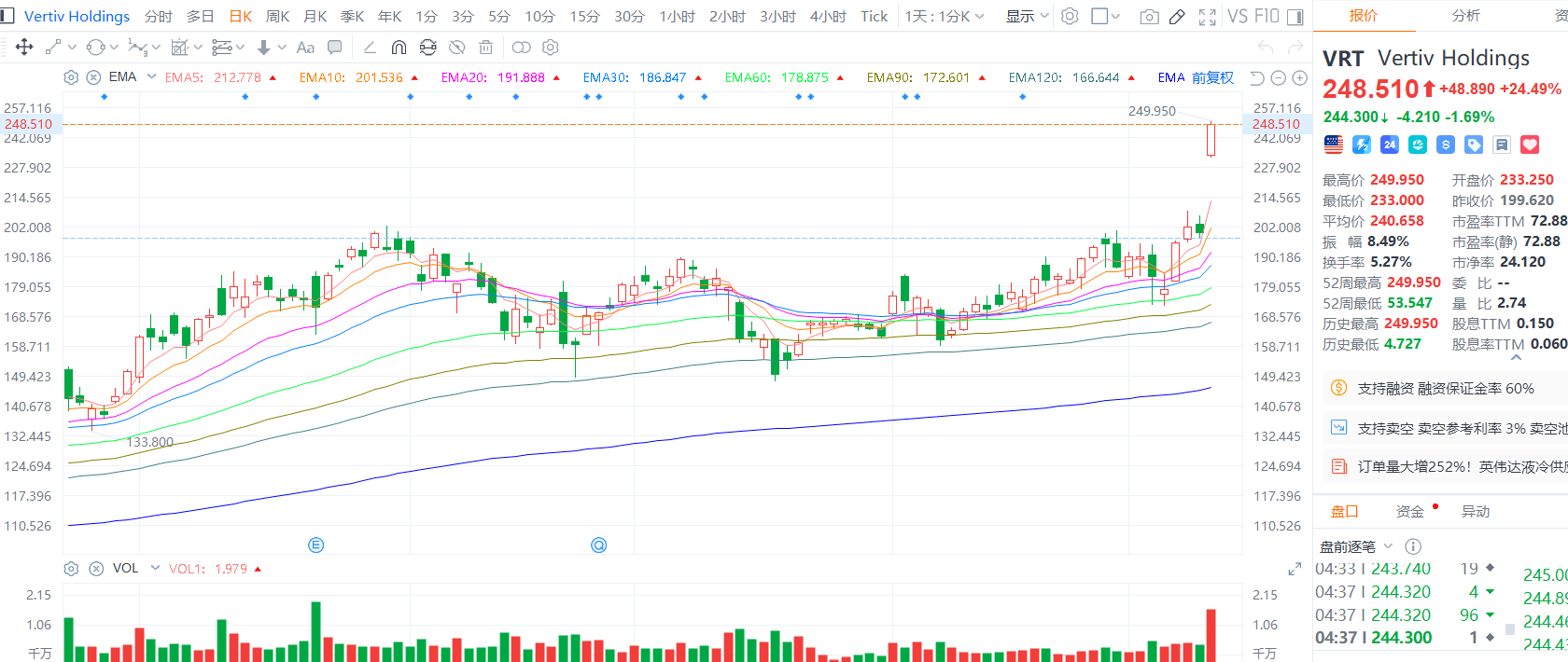 消息上,昨天美股VRT(电源+液冷)出业绩,爆单了。订单+252%,26全年预期大幅超出市场预测。昨夜直接大涨+24%。
