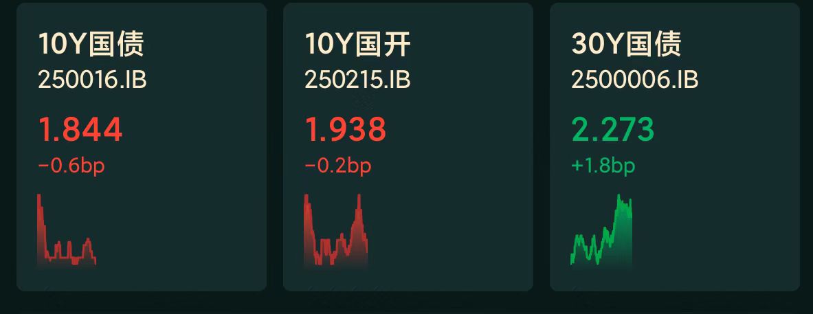 十年期国债收益率:1.844%,-0.6BP(国债收益率越跌,债市越涨)