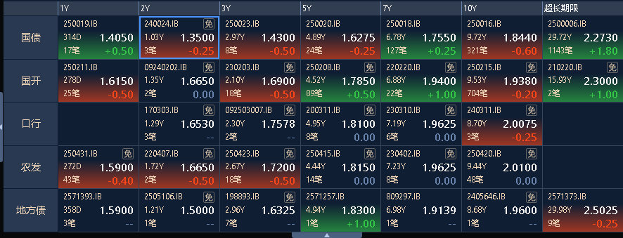 早盘中短端银行间主要利率债收益率窄幅波动,10年期国债活跃券收益率稳定在1.85%附近,但超长端现券收益率仍延续上行态势,30年期多只券迈向2.30%上方,其中,30Y附息国债250002收益率盘中升至2.301%,该券午间续发,市场预测中值为2.29%,实际发行加权利率2.302%。