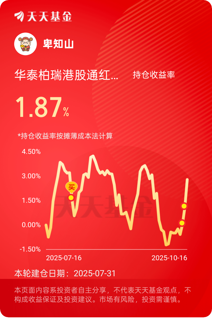 华泰港股通红利今日上涨1.67%,连涨三天。这清晰地表明,在市场缺乏主线时,基本面扎实的红利资产更容易获得资金共识。 $华泰柏瑞港股通红利ETF联接基金C$ #晒收益# #机器人新催化?马斯克构建“世界模型”# #3900点得而复失!A股风格要改了?# #稀土价格暴涨37%!稀土板块狂飙#