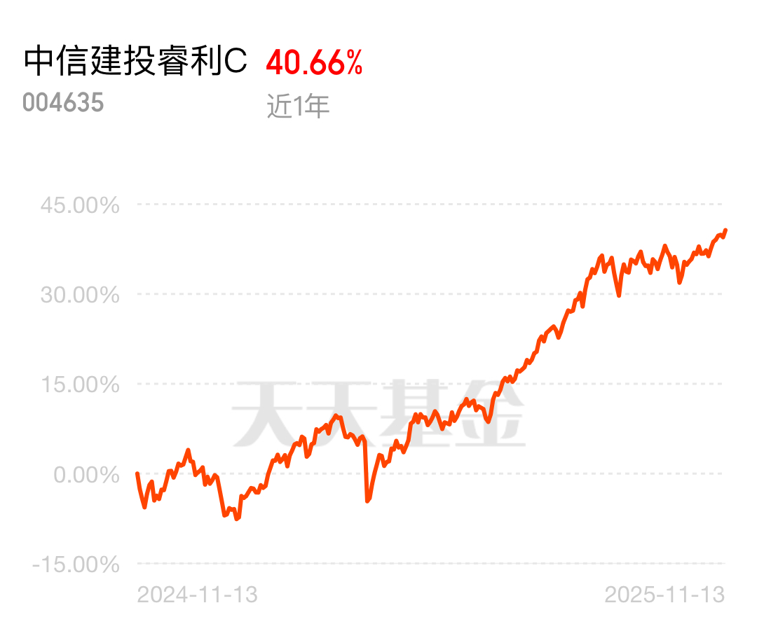 目前也配了点中信建投睿利C,近一年涨了40%,押的是国企改革和碳中和这些顺周期方向,跑得稳还回血快。$中信建投睿利C$