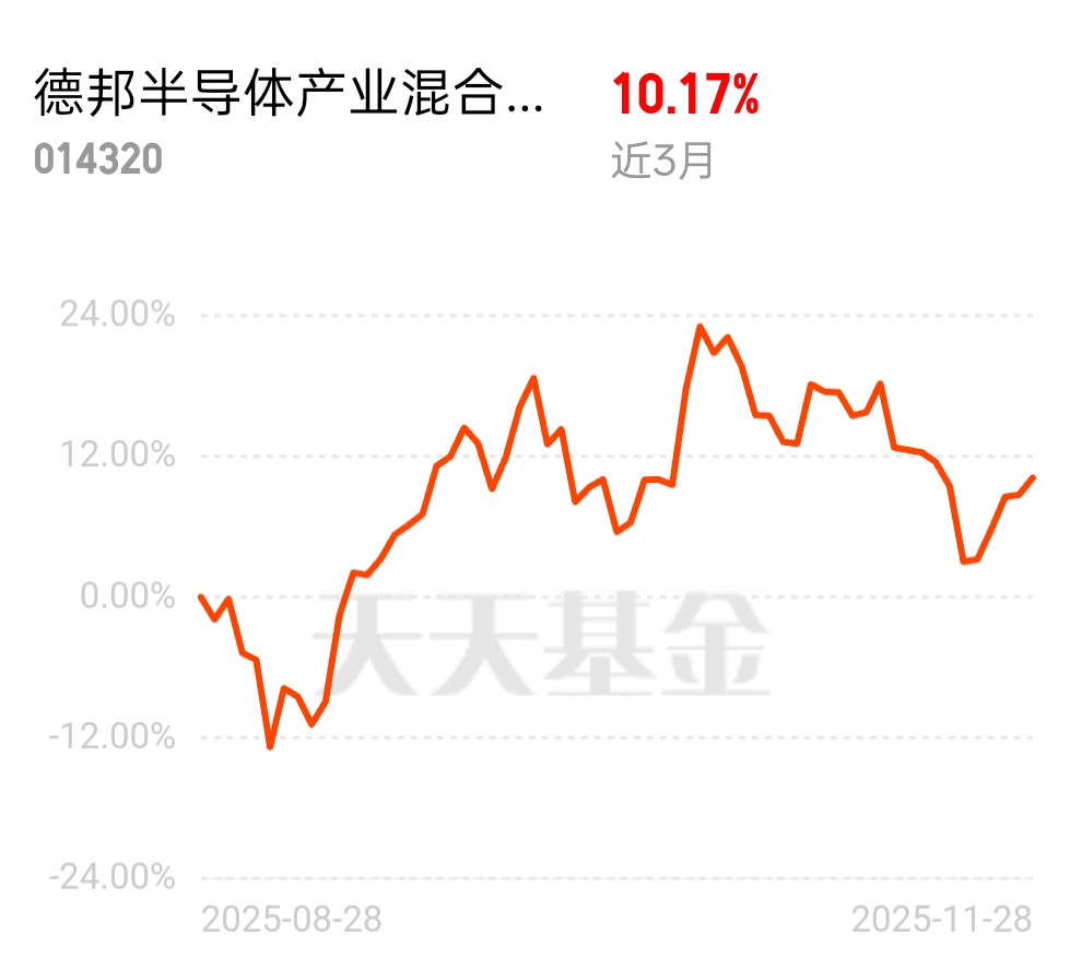 10 月 NAND 指数环比大涨 29.69%,消费电子 + 汽车电子双场景拉动需求放量。德邦半导体产业混合 C 近 3 个月 10.17%,存储势头回来了,德邦这只占比很高,多场景共振助力上涨。