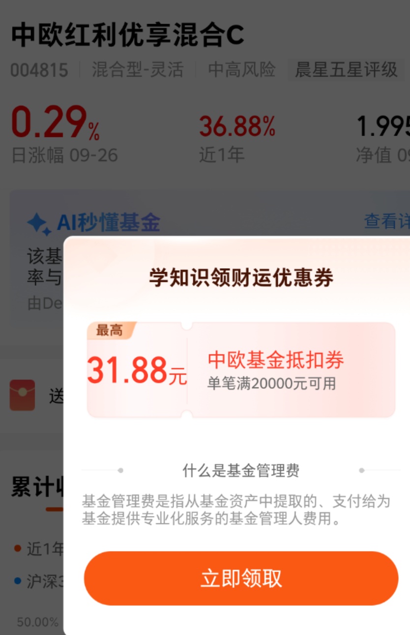今天股市行情调整,科技板块回调,还是红利赛道稳啊。$中欧红利优享混合C(OTCFUND|004815)$今天上涨0.29%,而且详情页还有惊喜呢。