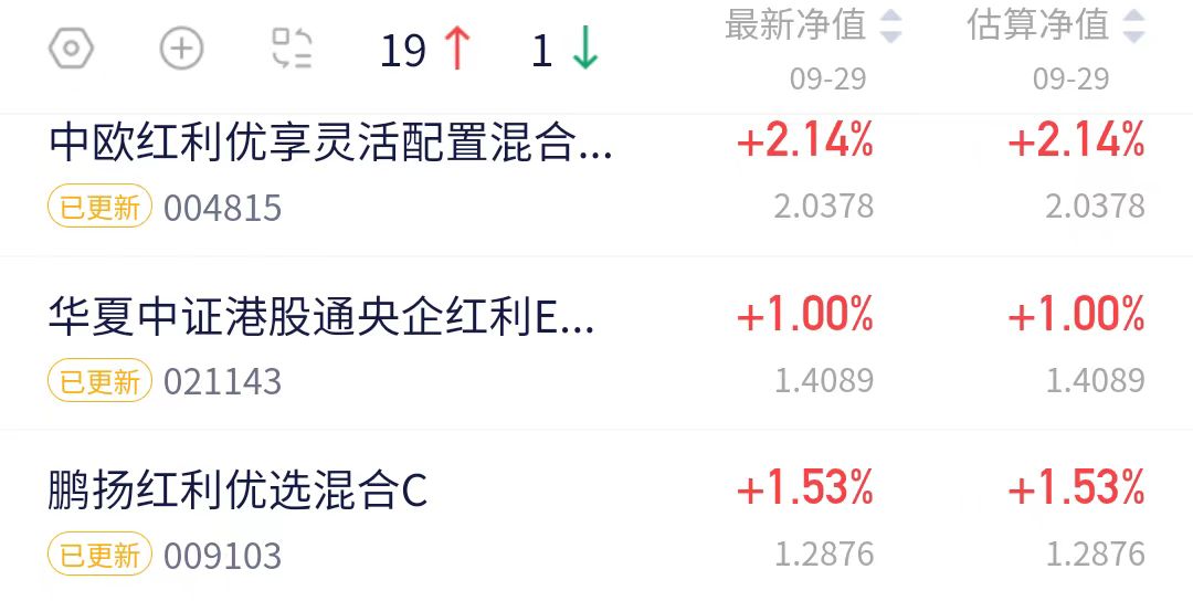 宝子们,今天普涨行情啊。$中欧红利优享混合C(OTCFUND|004815)$聚焦周期板块的大盘价值基金,今天上涨2.14%呢。回撤控制的好。近三个月上涨16.49%,