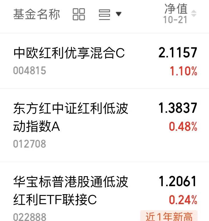 $东方红中证红利低波动指数A(OTCFUND|012708)$今天上涨0.48%