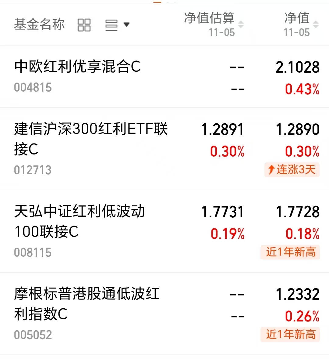 今天A股还给力呀,虽然早盘低开了,可是午后持续往上拉,三大指数全都收红。红利板块表现延续强势,也是市场企稳比较关键的重要板块。一起看看今晚净值情况: