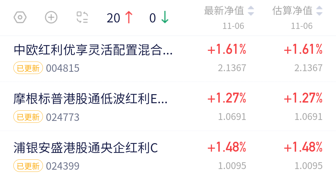 $浦银安盛港股通央企红利混合C(OTCFUND|024399)$上涨1.48%