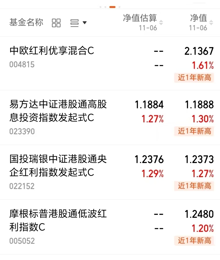 今日A股市场震荡走强,风格分化明显,资金在避险与主题题材间分流。红利板块延续强势表现,凭借稳定股息属性成为波动市中的 “避风港”,今天也是相关红利基金水涨船高,年末配置需求或将推动红利板块热度持续。一起看看今晚红利基净值更新表现: