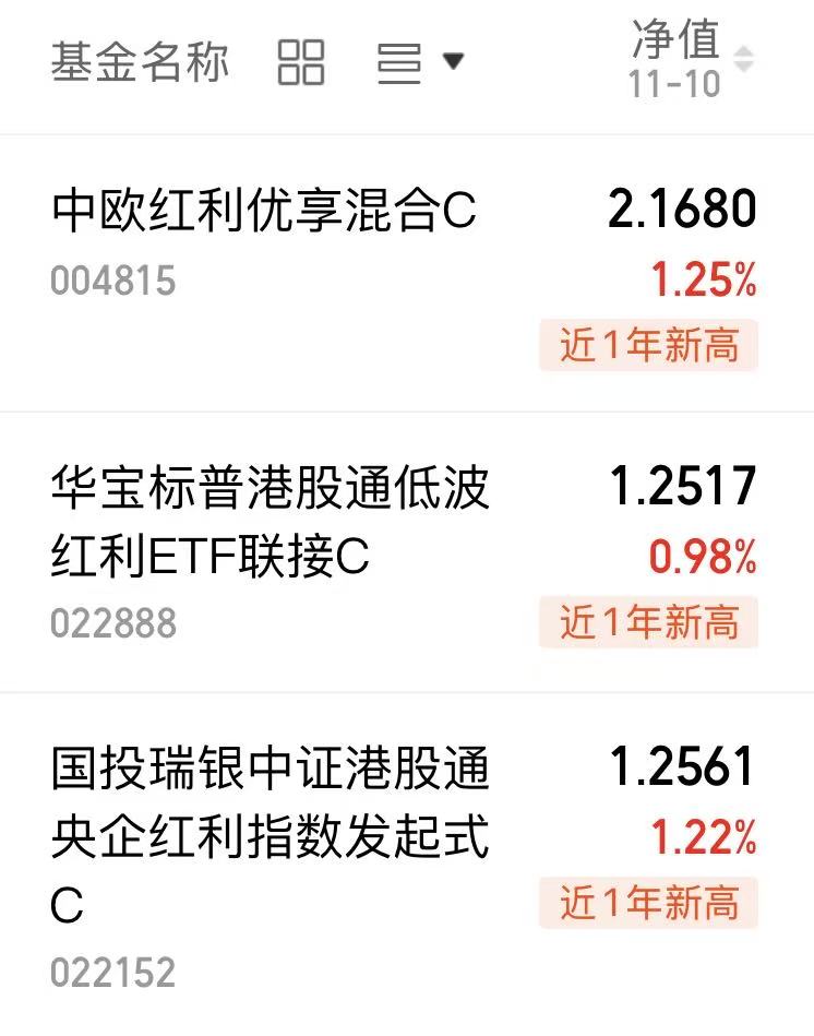$华宝标普港股通低波红利ETF联接C(OTCFUND|022888)$今天上涨0.98%