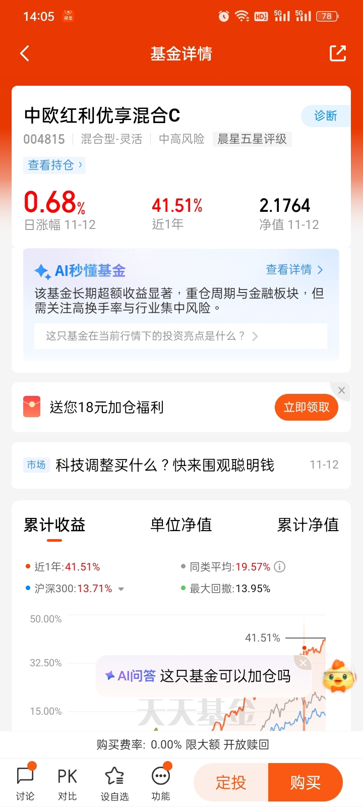 还是拿着这只心里比较踏实,现在好多产品不是单押有色波动就是纯守红利,像今天美联储降息预期增强,有色板块起来很快,传统红利那边金融股多,基本没跟上。蓝经理红利+有色双主线策略对路,稳中有进,两边机会都能把握。领个加仓红包顺手再补一点