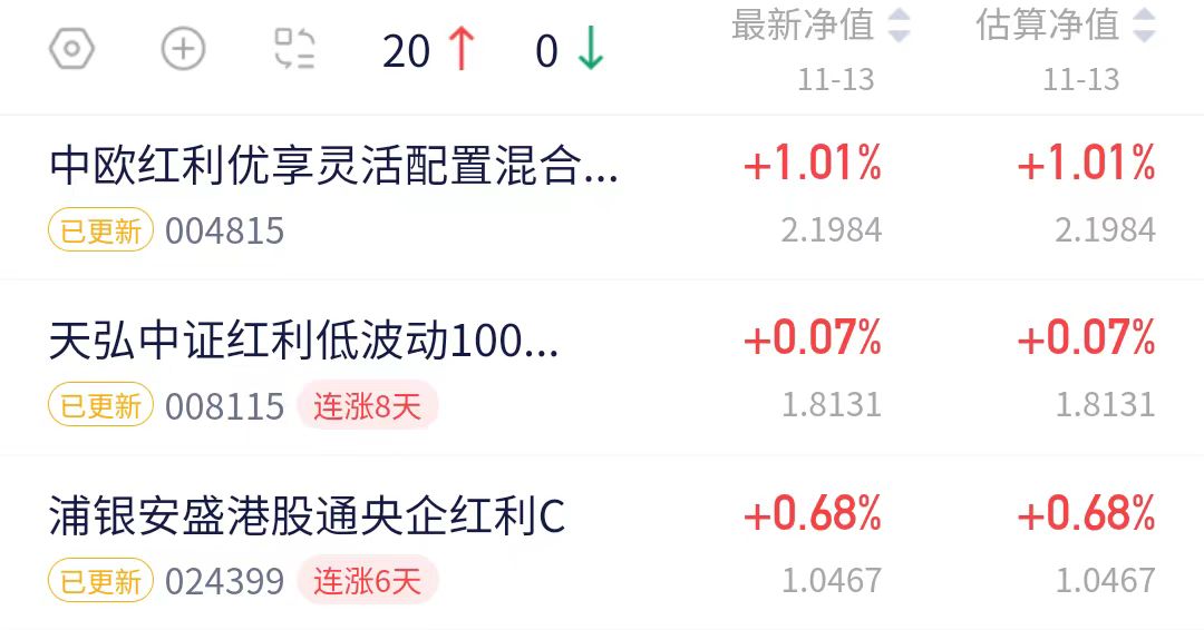 $天弘中证红利低波动100联接C(OTCFUND|008115)$上涨0.07%