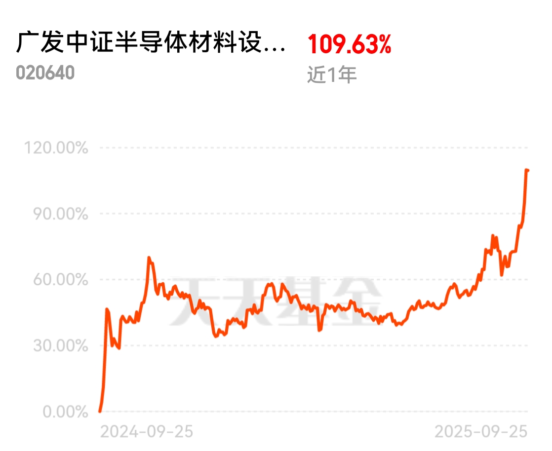按这趋势后面半导体材料设备还要涨,国产替代大势所趋,越往后面只会涨得越好,幸好今天趁机上车$广发半导体020640$!$广发中证半导体材料设备ETF发起式联接C$