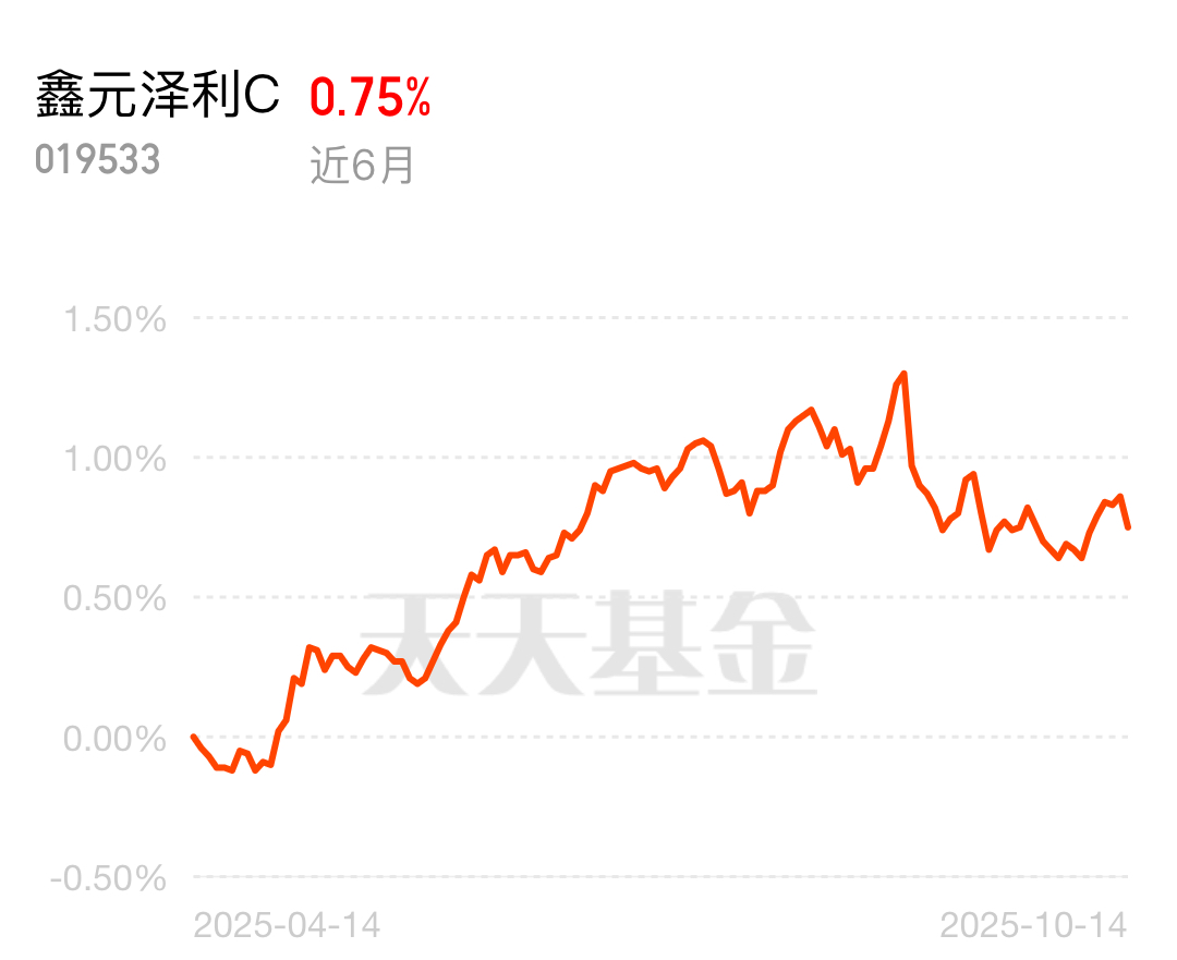 刚看盘面,信用债整体是晴天,没什么大风险,适合求稳的朋友。鑫元泽利债券C近6个月