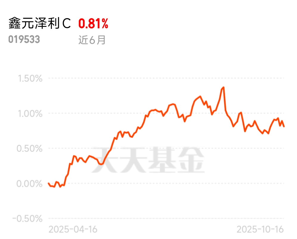 这段时间市场挺折腾,有人想赚钱又怕踩坑,纯债基虽稳,但有的觉得不够省心;纯股基又太刺激,心脏受不了。债市大环境其实挺好,月末资金面没紧张,10 年期国债收益率也平稳。鑫元泽利 C 就特适合这需求,不折腾还能拿稳收益,当下位置正好,不想冒风险又想省事儿的,上车就对了,不用天天盯盘!$鑫元泽利C$