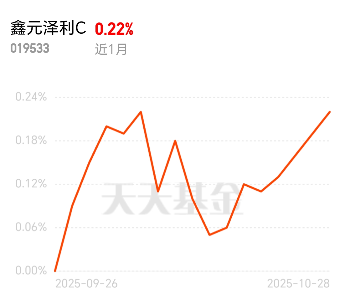 央妈出手调节债市后,市场情绪稳了不少,低风险配置需求也上来了。鑫元泽利债券C表现挺稳,近1个月收益0.22%,适合不想担风险的朋友。