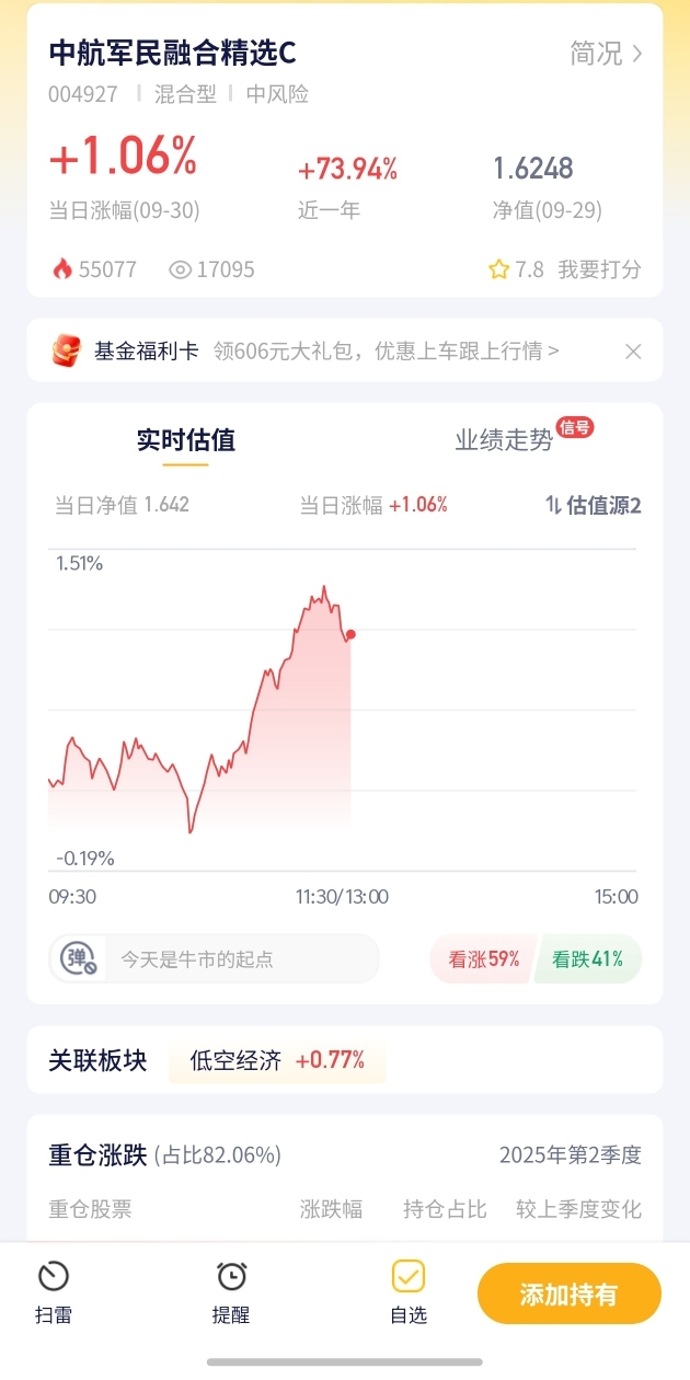 昨天涨0.23%,今天涨1.02%,虽然涨幅稍小,但军工板块整体走强,也算跟上节奏了。继续观察,看看后面能不能爆发!