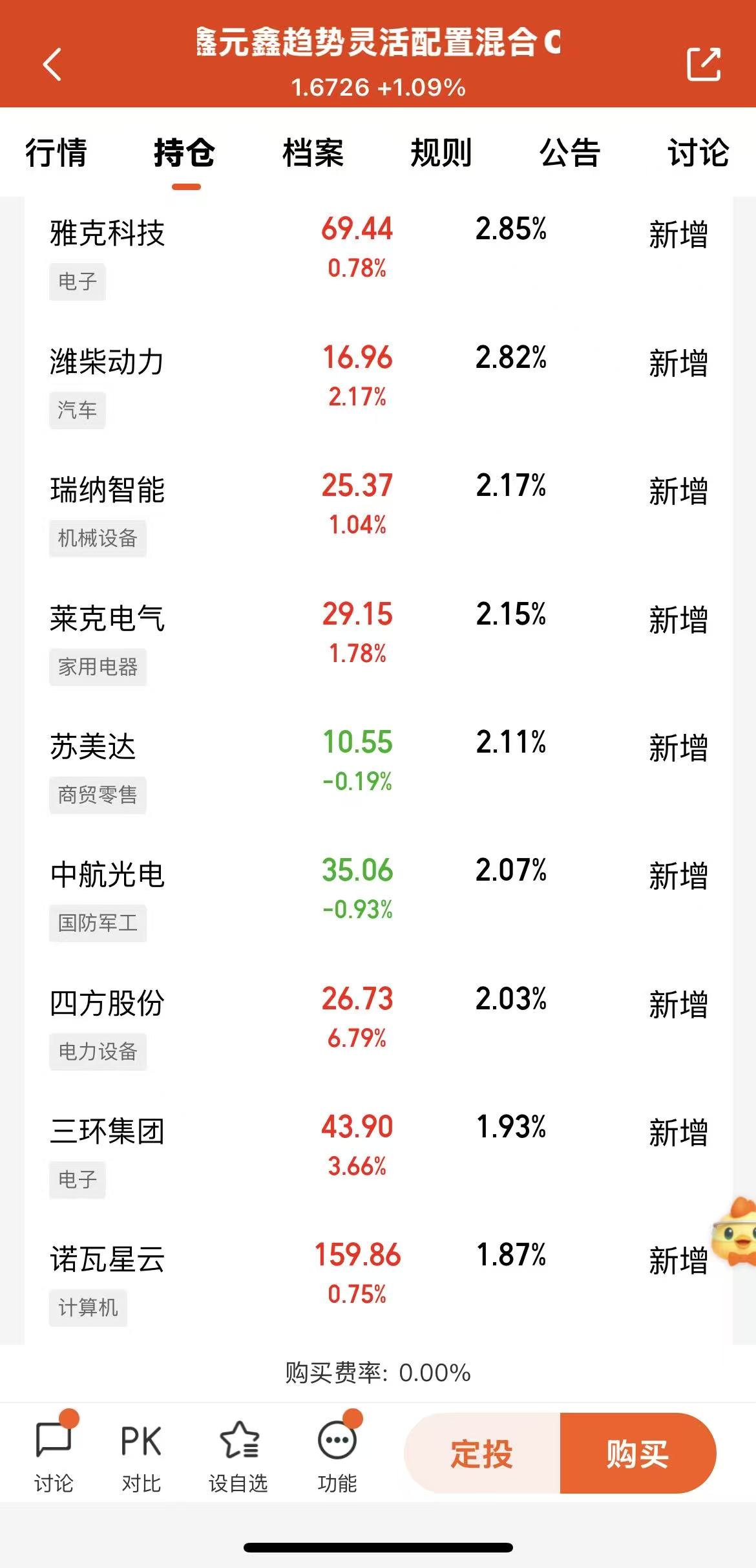 截至3季度,基金重仓股主要为雅克科技、潍柴动力、瑞纳智能、莱克电气、苏美达、中航光电等,其中股票持仓比例为88.66%,债券5.13%,现金0.32%,其他5.89%,