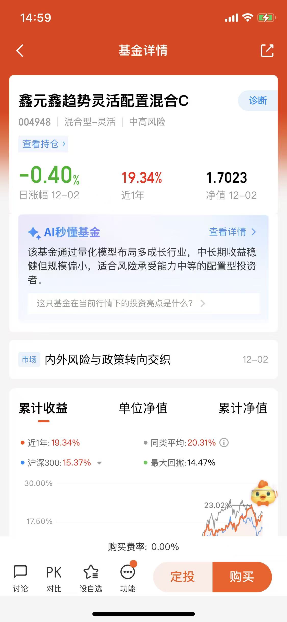 在当前A股市场风格快速轮动、热点转瞬即逝的背景下,传统的主流投资方式越来越难以应对市场的多变节奏。情绪干扰、信息不对称、执行滞后等问题时常让人追高杀跌、错失良机。而这时,主动量化策略的价值就显得尤为突出,白鹤君其实也早有布局,很久之前就投资了鑫元鑫趋势灵活配置混合C(004948)。