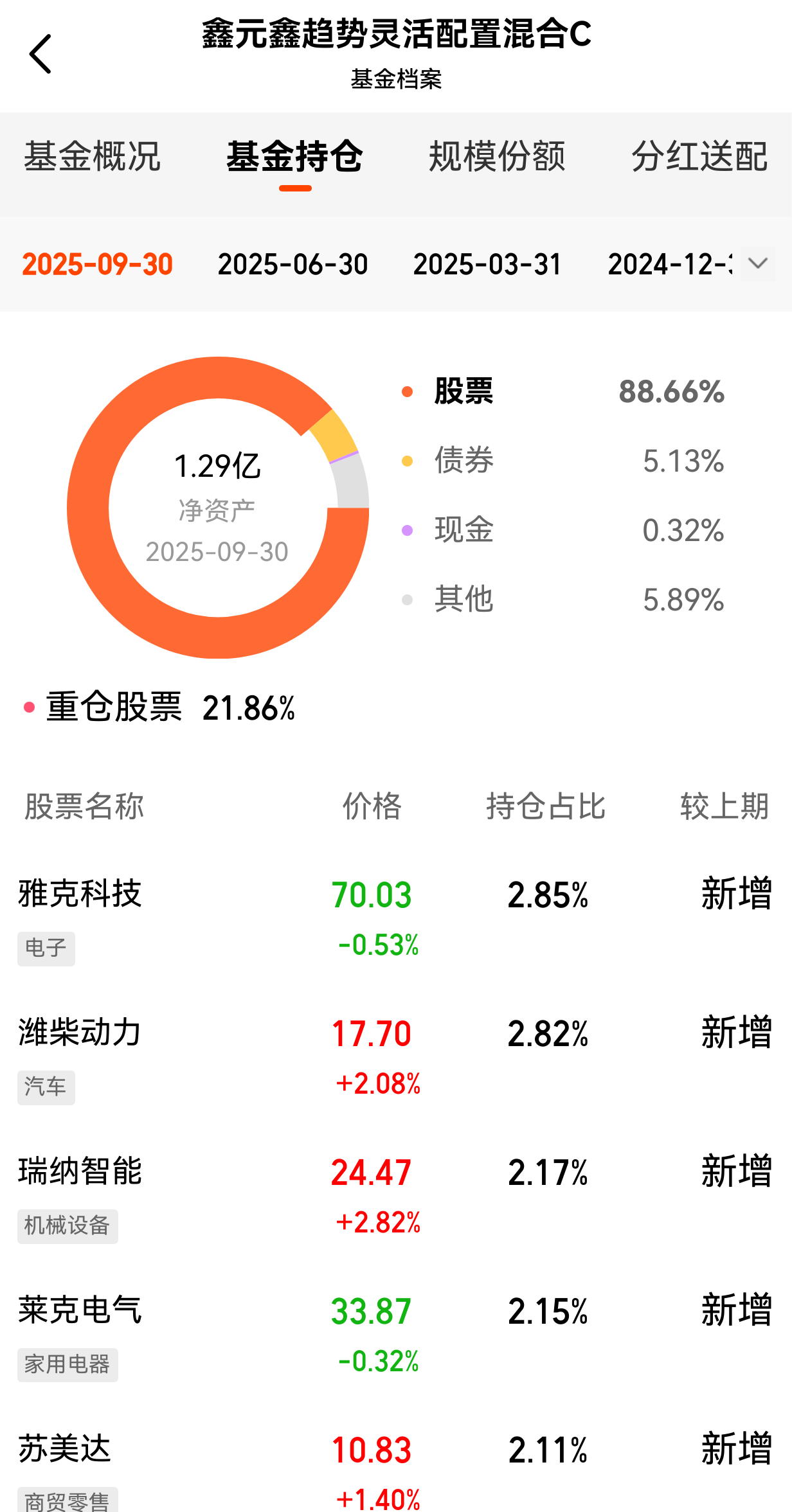 另外,鑫元鑫趋势灵活配置混合除了量化选股,还有主动精选,结合一些宏观和产业逻辑演绎,行业上适当集中,避开价值陷阱,这样可以提高一些投资胜率。特别是有主线行情的时候,不至于比集中投资落后太多。从鑫元鑫趋势前十大持仓重仓股来看,包括雅克科技、潍柴动力、瑞纳智能、莱克电气、苏美达、中航光电、四方股份、三环集团、诺瓦星云、宁德时代等,涉及科技、医药、消费、制造、资源等多个行业,配置均衡,可以更好的控制风险,小蚂蚁认为这种配置策略不会太去考虑风格切换,中长期更有机会获得超额收益。