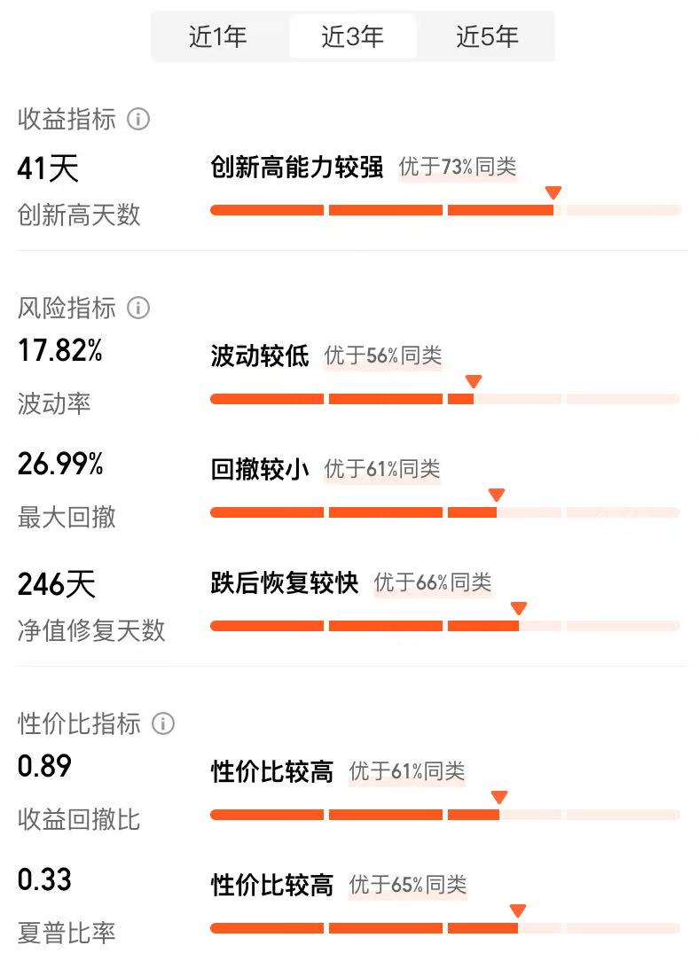 在风险调整后收益指标方面,基金的表现呈现出一定的波动性。截至2025年12月8日,基金近三年夏普比率为0.33,在同类可比基金中处于前三分之一水平。