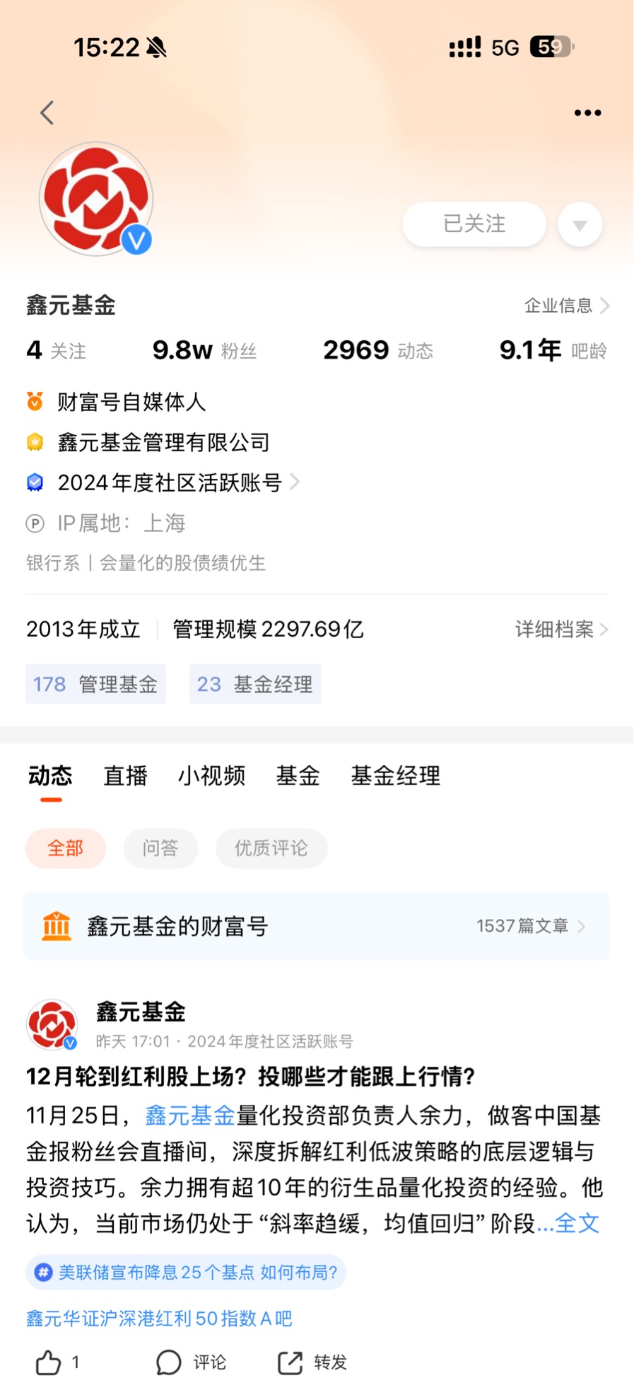 结合年末配置规划,我已经把鑫元鑫趋势C纳入核心持仓,打算再适度加仓。一方面,当前市场绝对低估的个股仍有400只以上,政策和资金也在持续呵护市场,估值修复策略的价值正凸显;另一方面,这只基金"量化打底稳收益、主动增强博弹性"的模式,既能守住全年收益成果,又能捕捉年末可能出现的结构性机会。