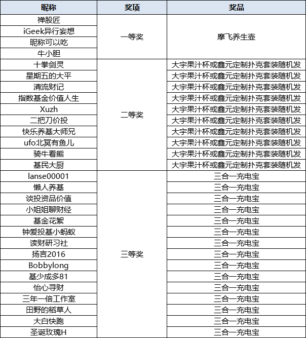 大家好,本次天天基金调研团活动圆满结束啦,感谢各位优秀创作者的参与,也感谢大家对鑫元基金及产品的关注和调研!恭喜以下中奖伙伴,请及时领取!