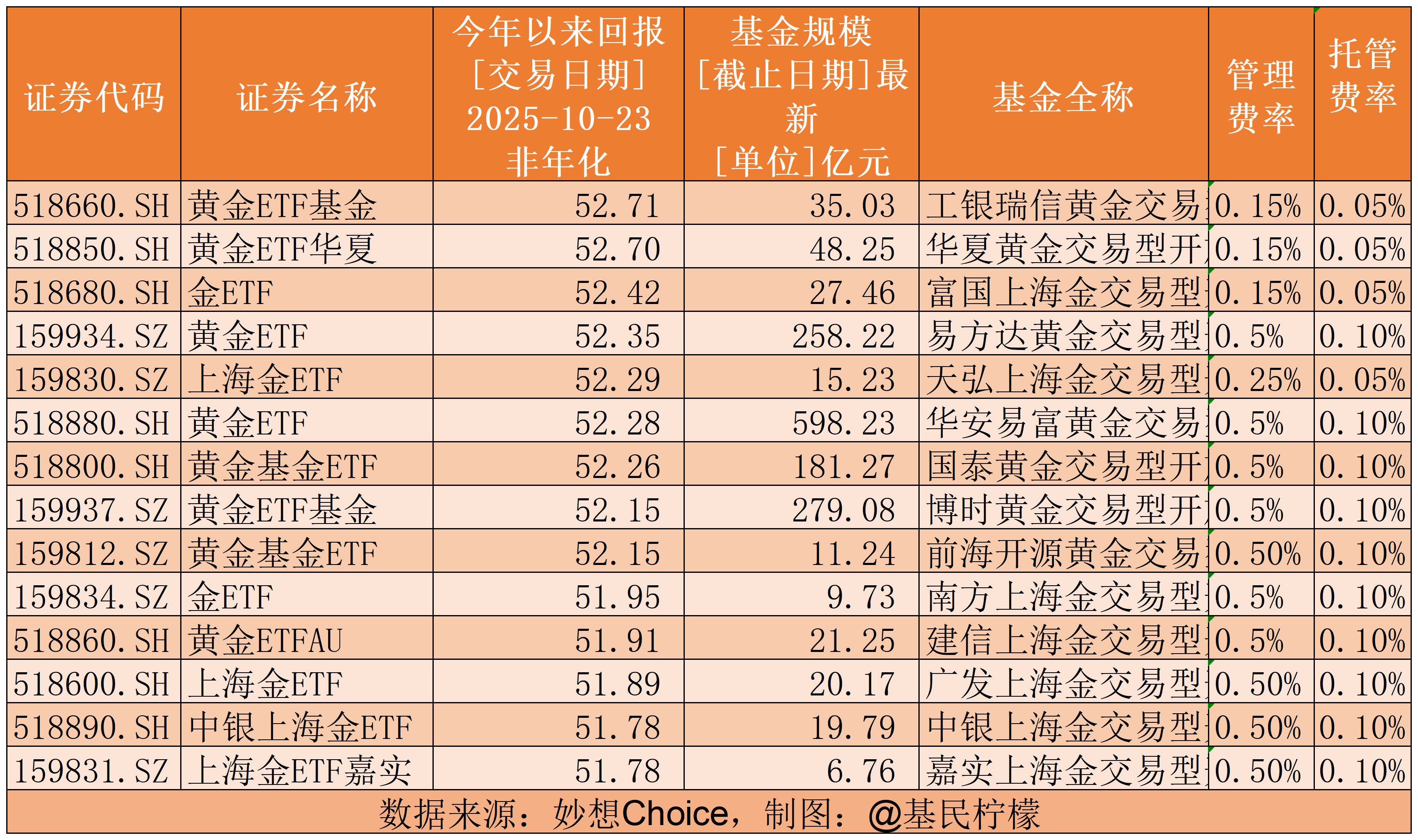 黄金ETF的排行