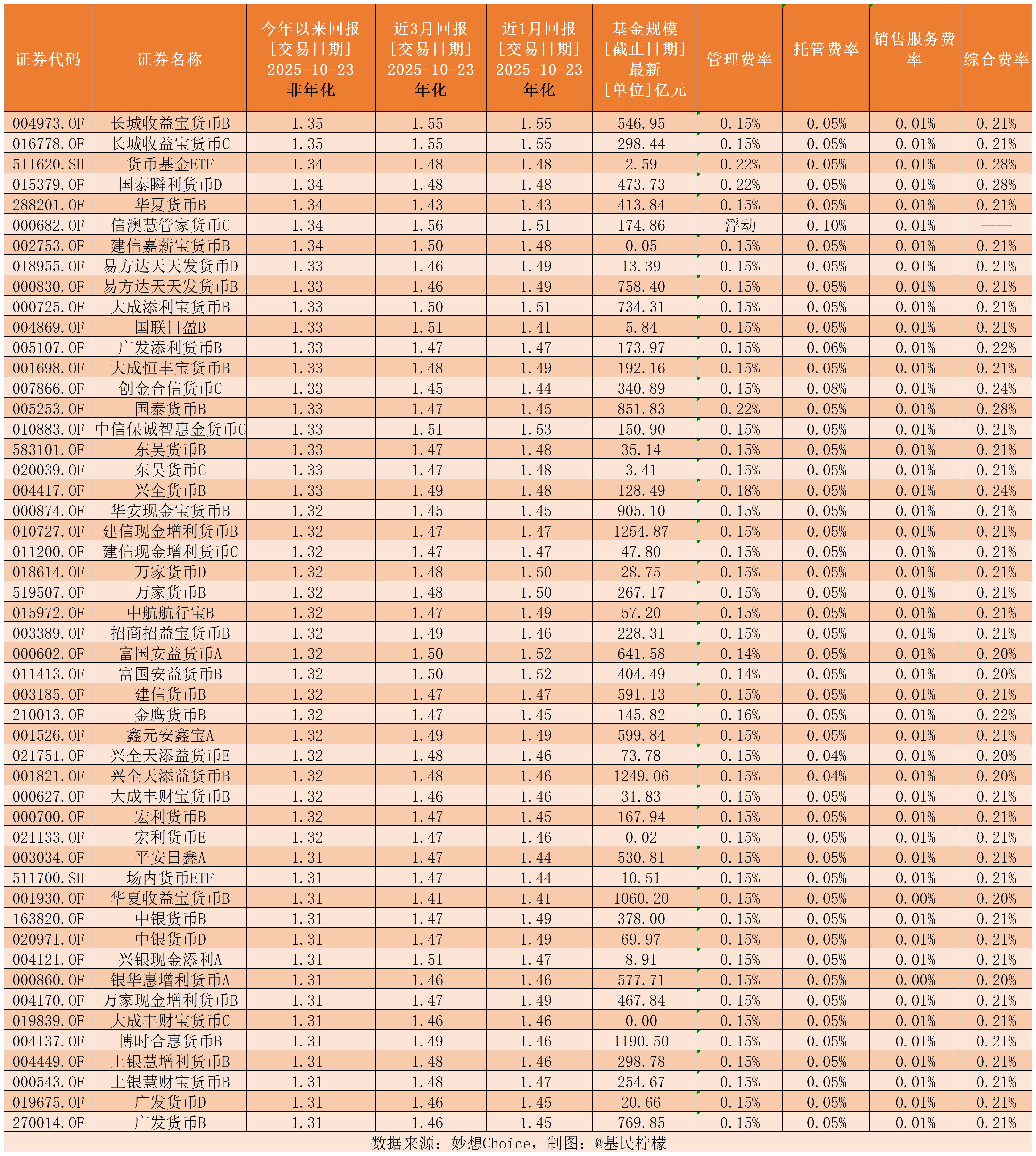 鄙人不才,在小红薯最受欢迎的帖子就是这个货币基金收益排行(点击图片可放大查看):