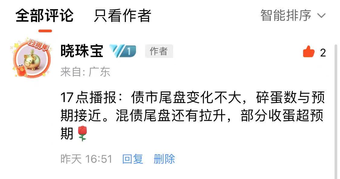 注意,如果播报后,债市尾盘拉升或者跳水,17点左右我会在估值帖子的评论区更新情况。