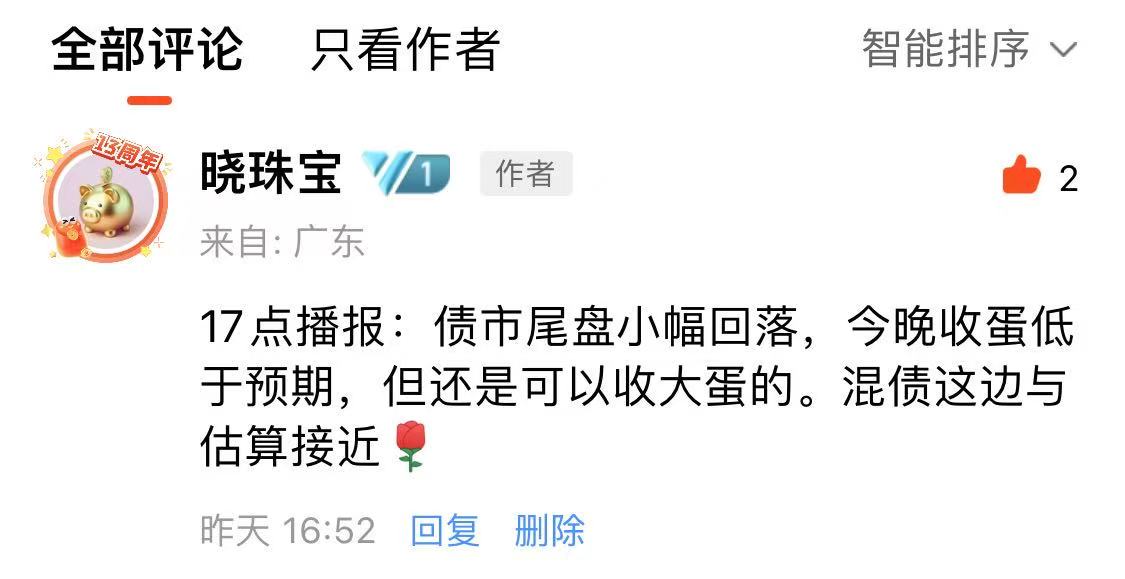 注意,如果播报后,债市尾盘拉升或者跳水,17点左右我会在估值帖子的评论区更新情况。