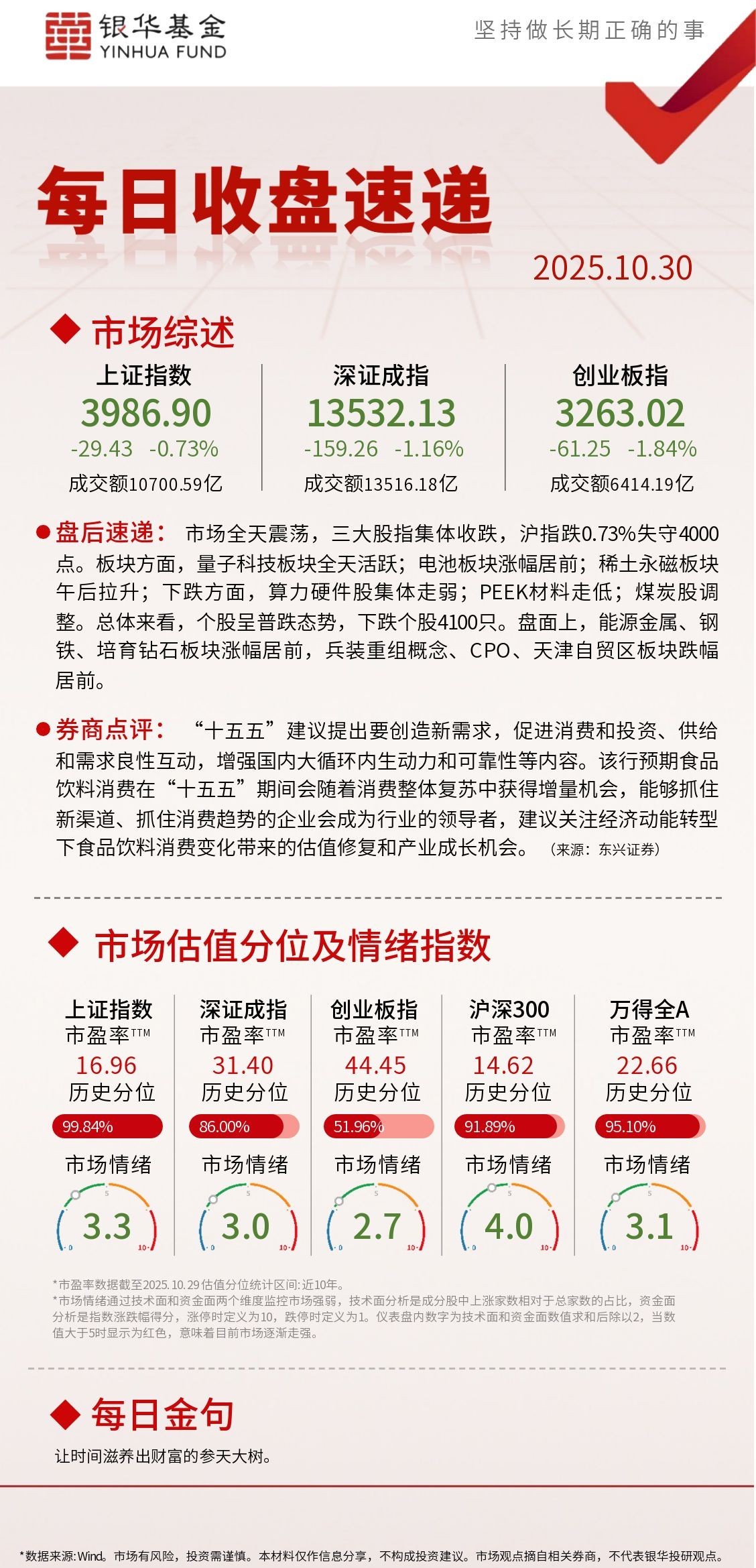 每日收盘速递 | 2025.10.30 沪指跌0.73%失守4000点