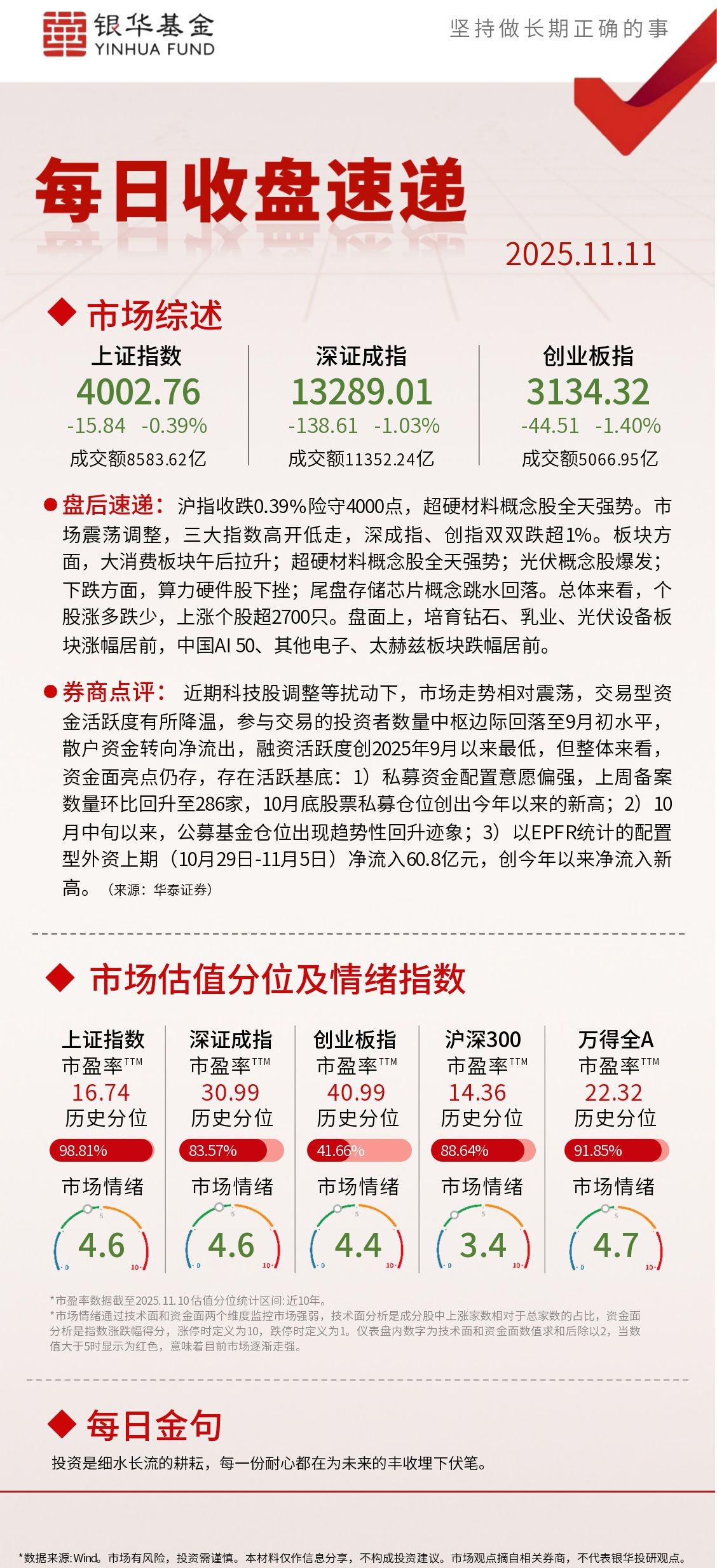 每日收盘速递 | 2025.11.11 沪指收跌0.39%险守4000点