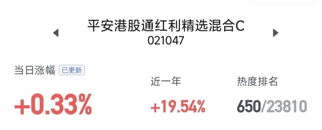 $$平安港股通红利精选混合C$今天红了0.33%还不