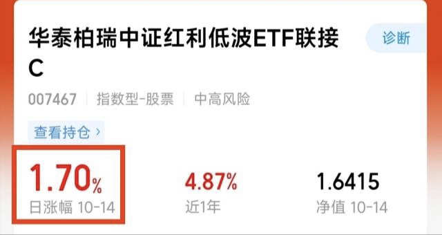 $华泰柏瑞中证红利低波ETF联接C$今天又涨1.70%!连着四天收获满满,这波行