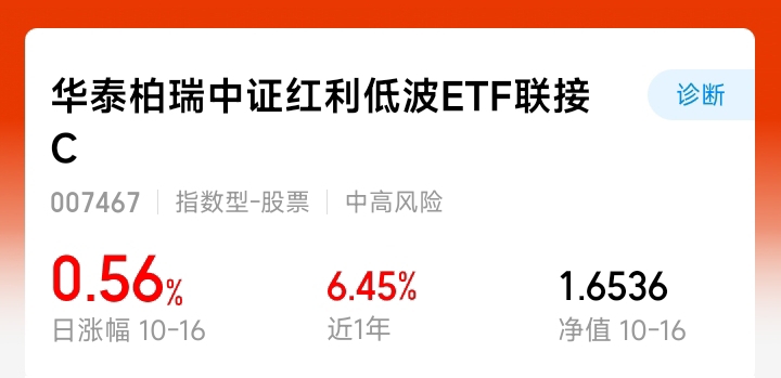 又见红旗飘飘!华泰中证红利今天涨0.56%,喜提六连阳。在这种行情里,能连续赚钱