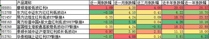 $东方红中证红利低波动指数C(OTCFUND|012709)$ $南方标普中国A股大盘红利低波50ETF联接I(OTCFUND|021056)$ $富国恒生红利ETF联接A(OTCFUND|019260)$ $中欧数字经济混合发起C(OTCFUND|018994)$ $同泰产业升级混合C(OTCFUND|014939)$