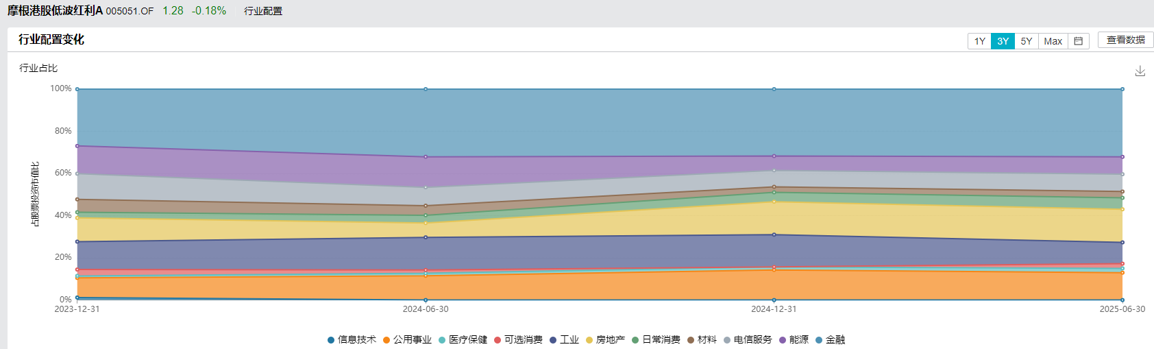 这只基金跟踪的是标普港股通低波红利指数,持仓逻辑很清晰:重点配置金融(32.12%)和公用事业(12.97%)这类防御性强的板块,而且个股权重上限5%、行业上限30%,分散化做得很到位,不用担心被单一个股或行业的波动带崩。