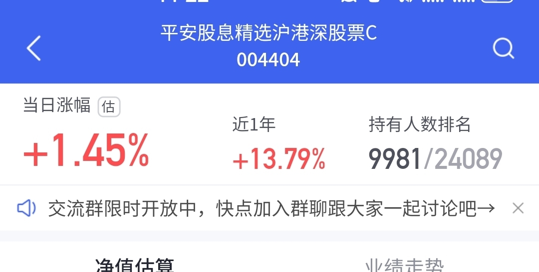 $平安股息精选沪港深股票C$ 估值涨1.45%,不错!