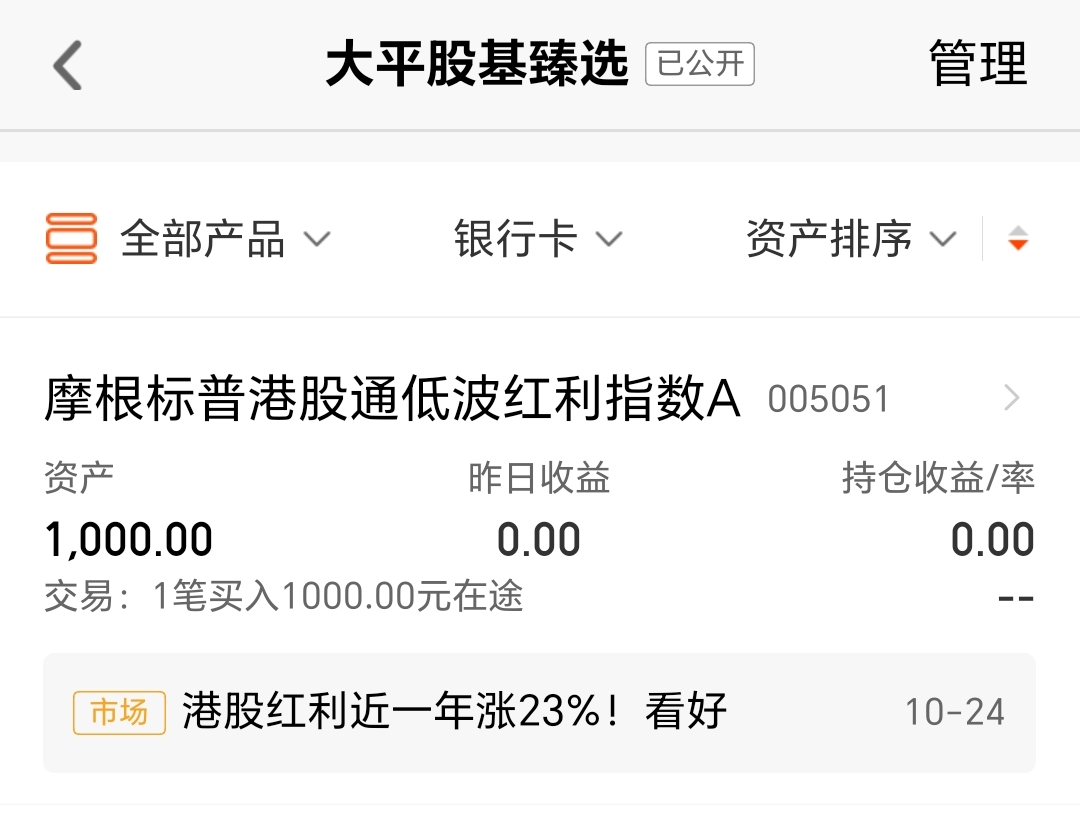 “牛市赚钱不算本事,熊市守得住才是真本事。”四季度市场风云变幻,把部分资产转移到港股红利这类“避风港”,说不定既能防风浪,还能捞海鲜。$摩根标普港股通低波红利指数A(OTCFUND|005051)$这样的品种,就像你的“资产压舱石”——平时不显眼,风浪来时才知道它的价值。