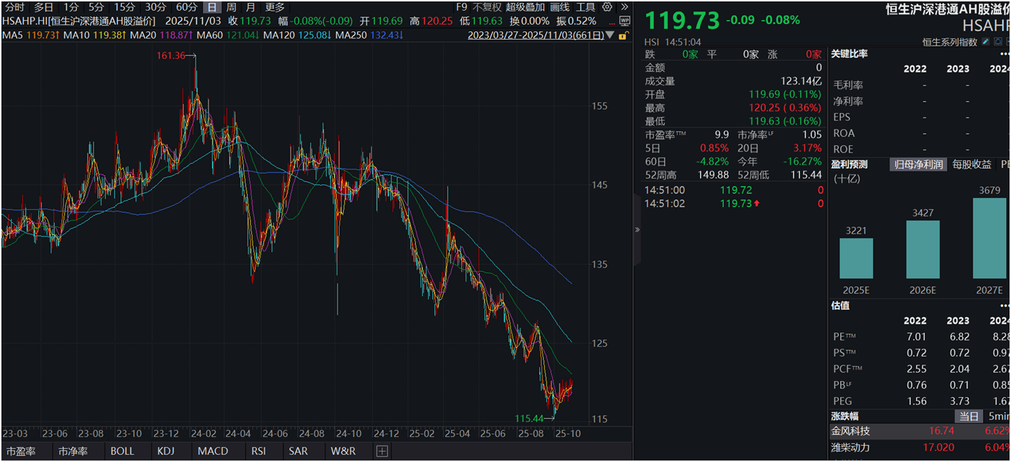 而且A股和港股之间存在溢价率优势。简单说,就是同样的分红,你花更少的钱就能买到。眼下ah溢价指数处于119附近,虽然已经有所回落,但是港股依旧处于折价状态。有研究对比了港股红利与A股红利的性价比,发现随着南向资金持续流入,港股红利的估值沟壑正在被填补,但现在配置仍然不晚。