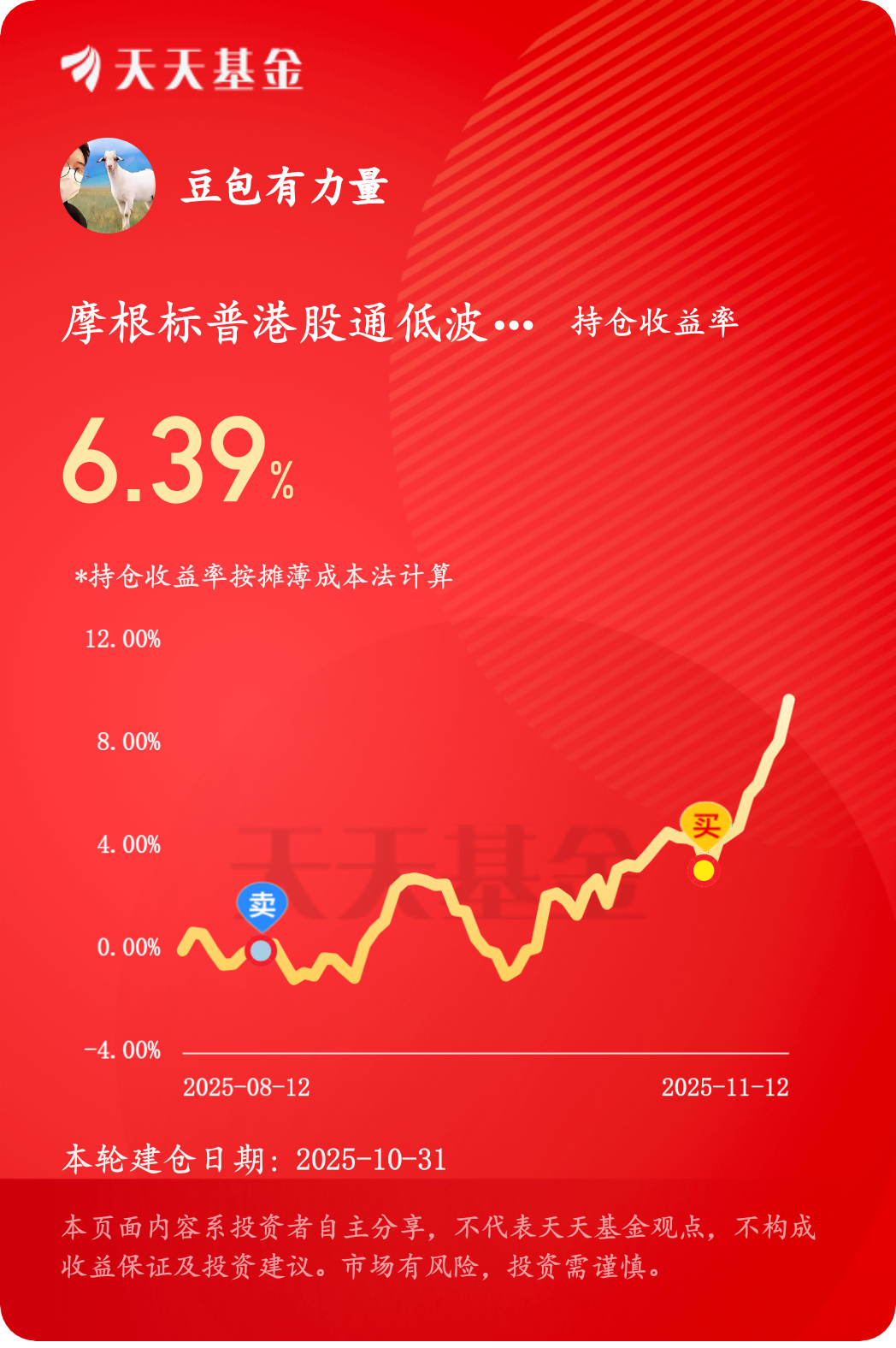 港股红利最近挺厉害的,我布局的$摩根标普港股通低波红利指数A$最近自己8连涨了,