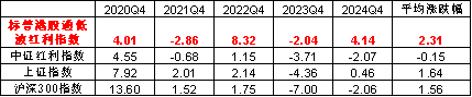 每到四季度或临近年底时,市场上聊“高股息”“红利策略”的声音就会变多。这背后有着深刻的“季节性规律”。从相对收益角度分析,年末往往是价值风格相对占优的时段,这一规律我们可以从数据中发现。根据WIND数据显示,近五年以来红利类指数在四季度行情表现多数优于其他市场主流指数,尤其是港股红利赛道。近五年以来,标普港股通低波红利指数的平均涨跌幅为2.31%,高于中证红利指数(-0.15%),上证指数(1.64%)以及沪深300(1.56%)。